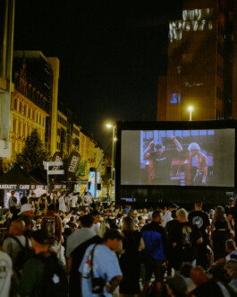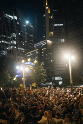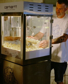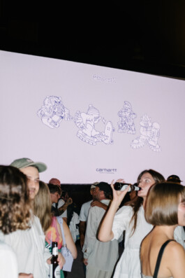 The meeting point for the video night was the collection launch at the Carhartt store in Frankfurt, before heading to the huge pop-up open-air cinema on Willy-Brandt-Platz in the heart of the city.