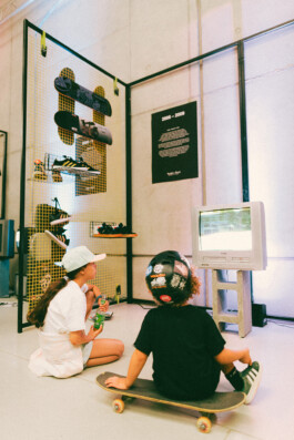 In addition to several different playback and recording devices, the installation also consisted of iconic exhibits from the respective eras, from skated boards and magazines to ripped and worn out shoes. The Adidas Superstar, which was super popular in the very early years, stood out. Back then with fat laces and socks under the tongue, today it remains unchanged on the boards of the Gen Z generation. A true original.